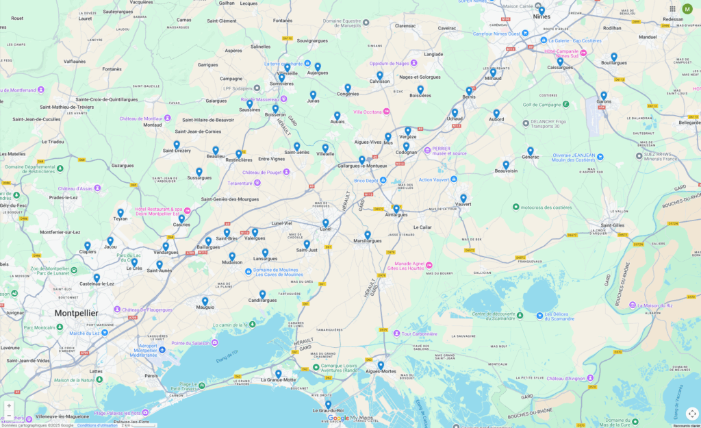 Nous intervenons sur un large secteur géographique, comprenant l’ensemble de ces communes et leurs environs : Nîmes, Bouillargues, Caissargues, Garons, Générac, Beauvoisin, Vauvert, Aubord, Milhaud, Bernis, Uchaud, Boissières, Calvisson, Congénies, Aubais, Junas, Aujargues, Villevieille, Sommières, Boisseron, Villetelle, Saint Sériès, Saussines, Vergèze, Codognan, Mus, Gallargues-le-Montueux, Aimargues, Aigues-Mortes, Le Grau-du-Roi, La Grande-Motte, Marsillargues, Lunel, Saint-Just, Candillargues, Lansargues, Valergues, Mudaison, Mauguio, Saint-Brès, Baillargues, Vendargues, Saint-Aunès, Restinclières, Beaulieu, Sussargues, Saint-Drézéry, Castries, Teyran, Jacou, Le Crès, Clapiers, Castelnau-le-Lez.